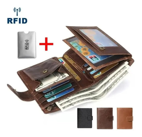 Cartera Billetera Antirrobo Rfid Para Hombre Cuero