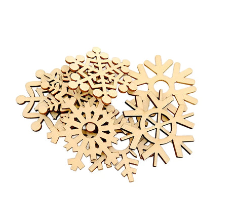 10 Adornos Copos De Nieve Madera Arbol De Navidad