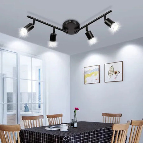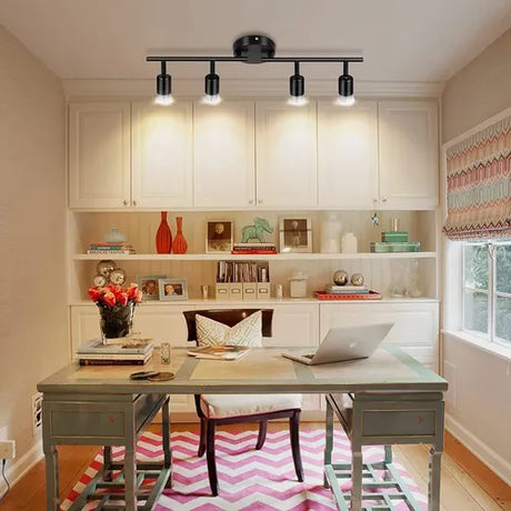 4 Foco Riel Luz Cálida Riel Monofásico 1mt Negro