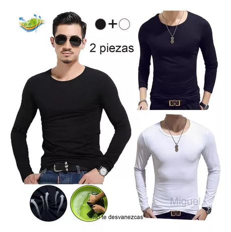 2 Camisetas Manga Larga Cuello Redondo Hombremoda Cómoda