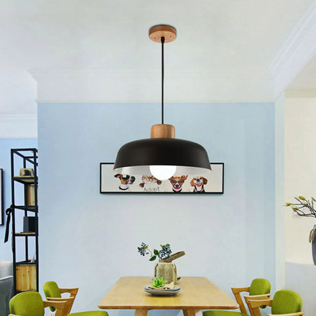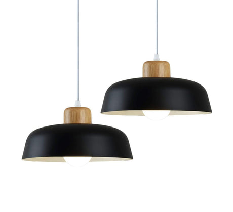 2 Unidades Lámpara colgante metal madera redonda nórdica E27 Negro