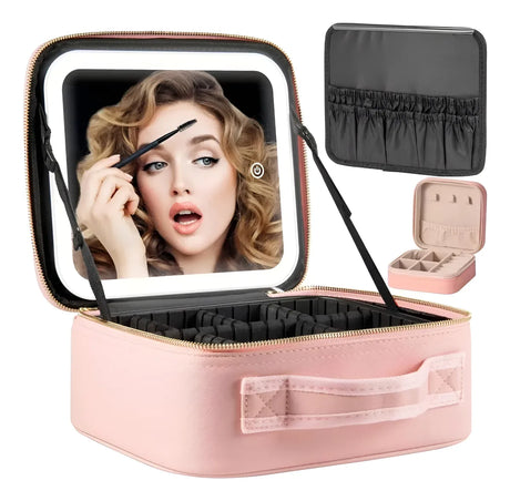 Bolso De Maquillaje Con Luz Led Recargable Rosada