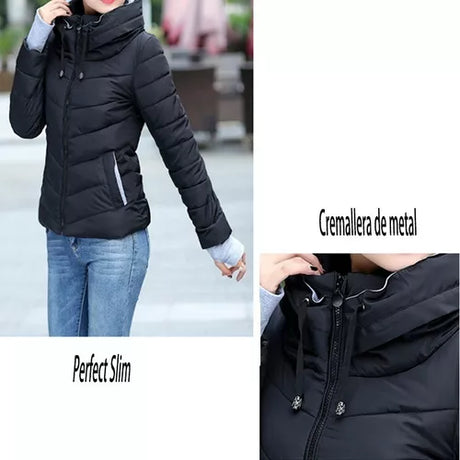 Chaqueta acolchada corta con cremallera completa, ligera, manga larga, cuello alto
