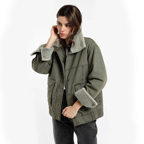 Chaqueta con capucha Sherpa forrada de Franela cuadros para mujer