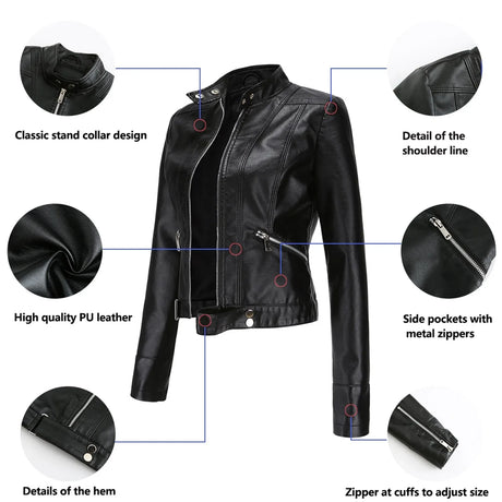 Chaqueta de PU para mujer - Negro Cierre Metalico