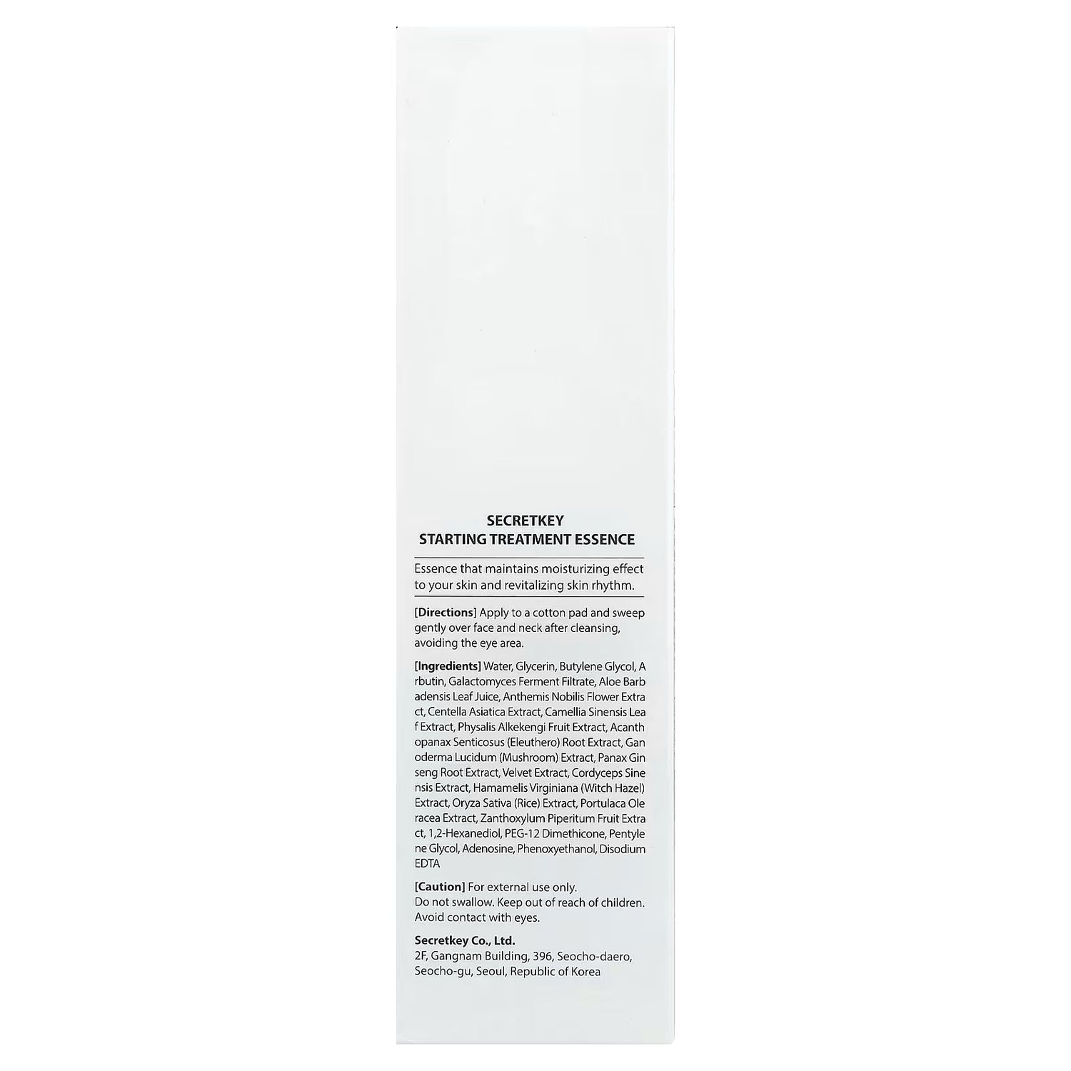 Agua, glicerina, glicol de butileno, arbutina, filtrado de fermento de Galactomyces, zumo de hoja de Aloe barbadensis, extracto de flor de Anthemis nobilis, extracto de Centella asiatica, extracto de hoja de Camellia sinensis, extracto de fruto de Physalis alkekengi, extracto de raíz de Acanth opanax senticosus (eleuthero), extracto de Ganoderma lucidum (hongo), extracto de raíz de Panax ginseng, extracto de terciopelo, extracto de Cordyceps sinensis, extracto de Hamamelis virginiana (avellano de bruja), extracto de Oryza sativa (arroz), extracto de Portulaca oleracea, extracto de fruto de Zanthoxylum piperitum, 1,2-hexanodiol, PEG-12 dimeticona, pentilenglicol, adenosina, fenoxietanol, EDTA disódico.