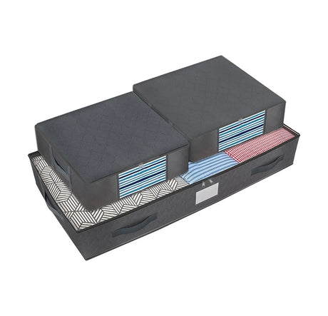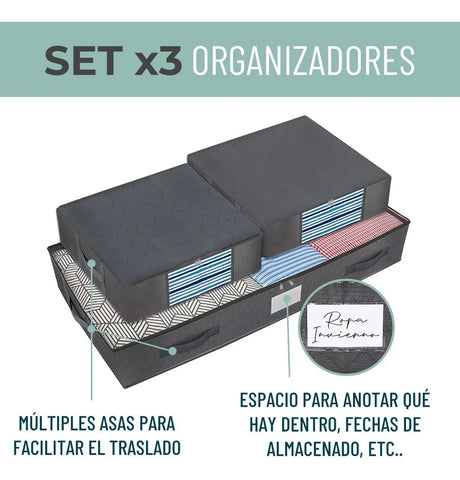 Organizador De Ropa Bajo Cama Almacenamiento Set X 3 Gris Claro