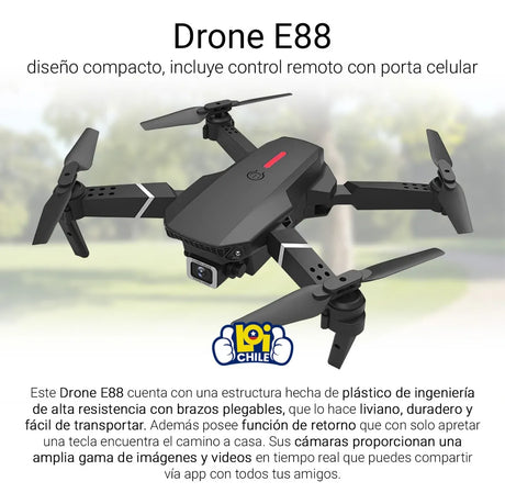 Drone Con Cámara Dual Hd E88 Wifi 3 Baterías Y Protectores Color Negro