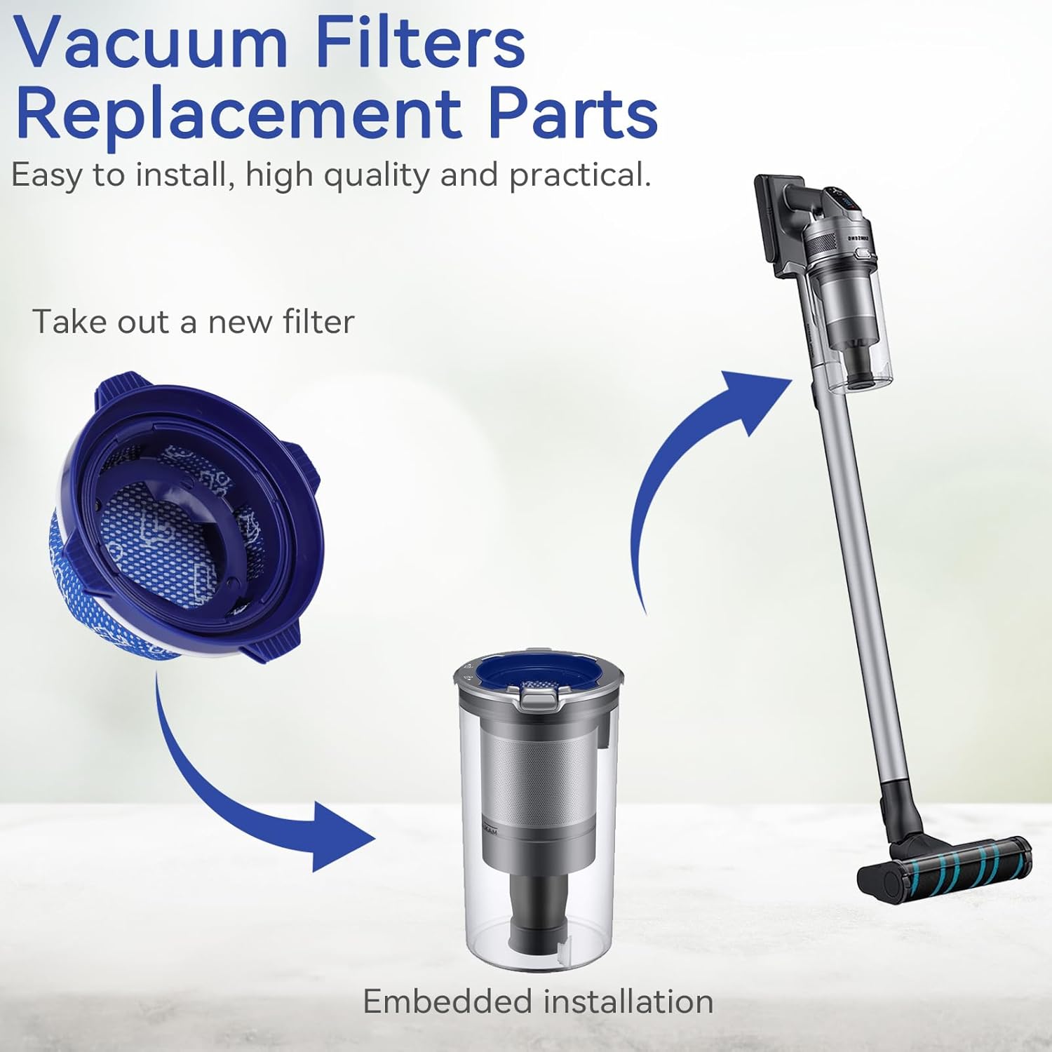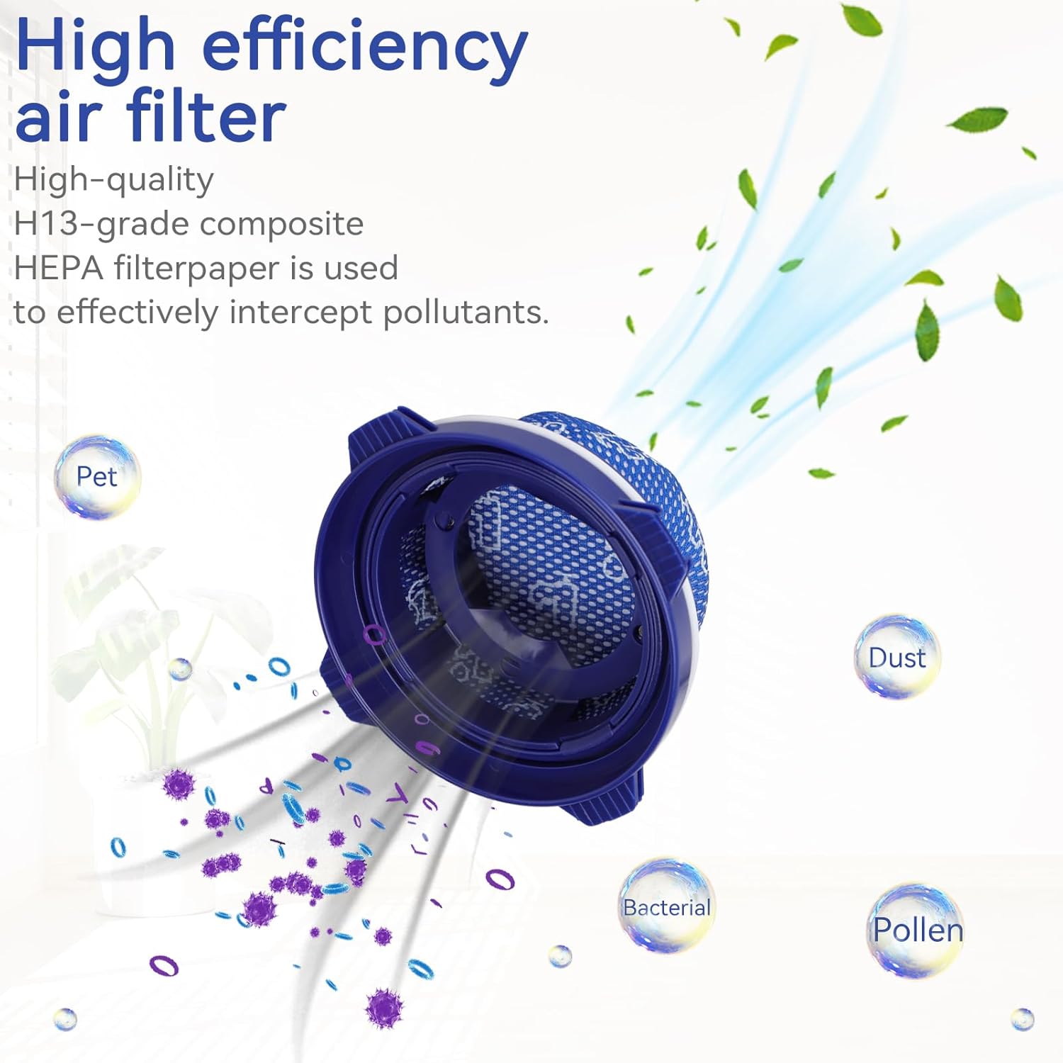 Filtro de repuesto: Reemplazar y limpiar el filtro regularmente mejorará la potencia de succión de la aspiradora y prolongará su vida útil. Para un rendimiento óptimo, cambie el filtro al menos cada 2 o 3 meses.