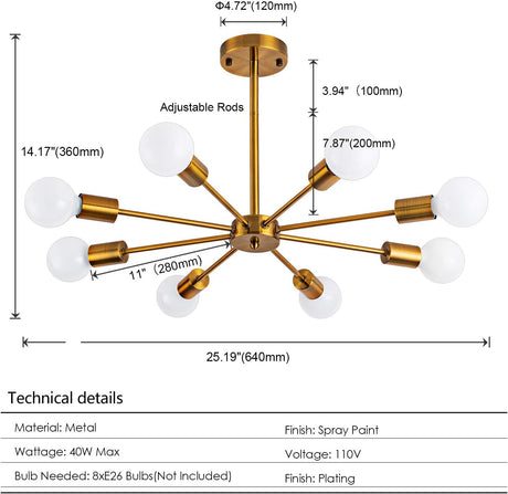 Lámpara de araña de 8 luces moderna Dorada