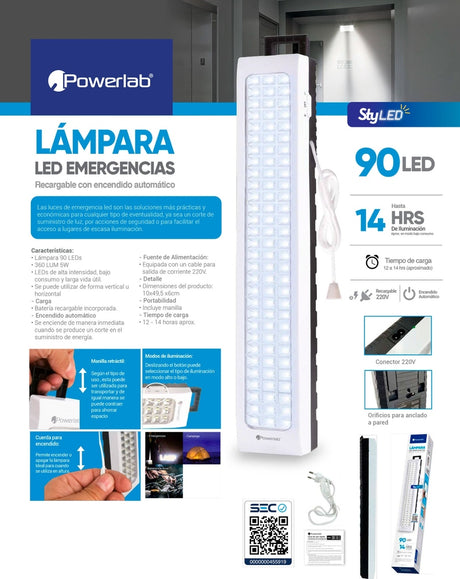 Lámpara de emergencia Powerlab LED con batería recargable 5W blanco