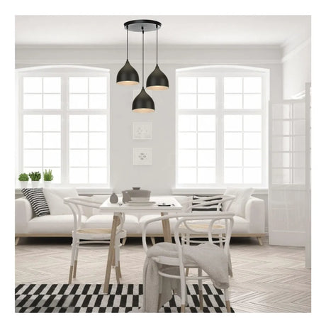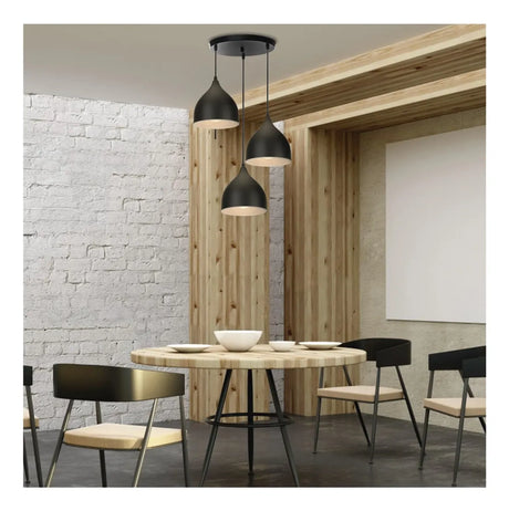 Lámpara Colgante Nórdica Moderna Luz De Techo 3 Cabezas Negro