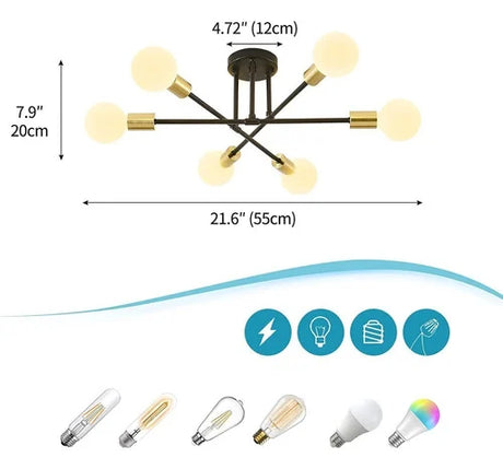 Lámpara De Techo Vintage Araña Sputnik 6 Luces De Brazo