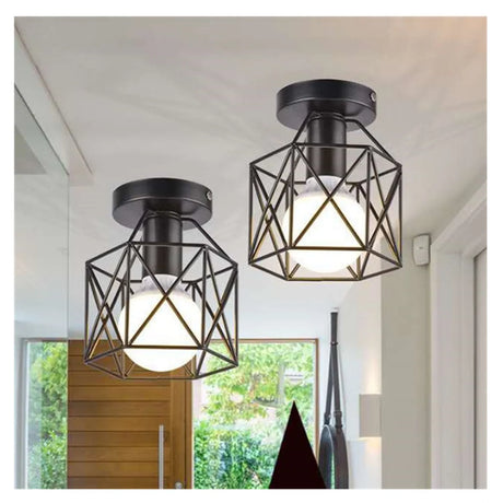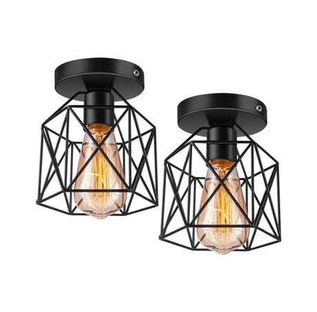 Lámpara Colgante de Techo con Jaula Metal 2 Piezas Negro