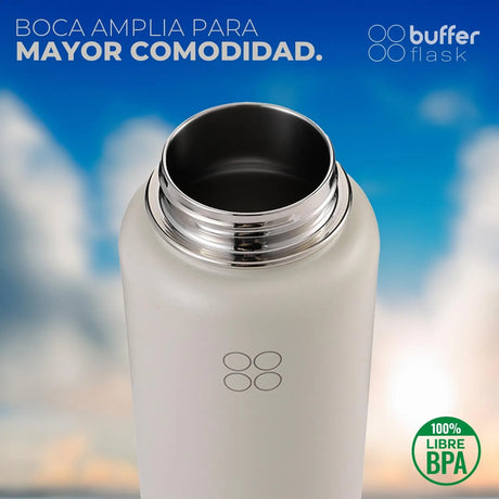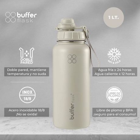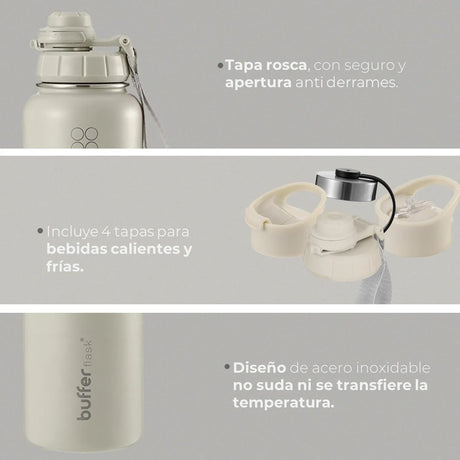 Termo Botella Agua Termica Acero Inoxidable + Tapas - Color Crema
