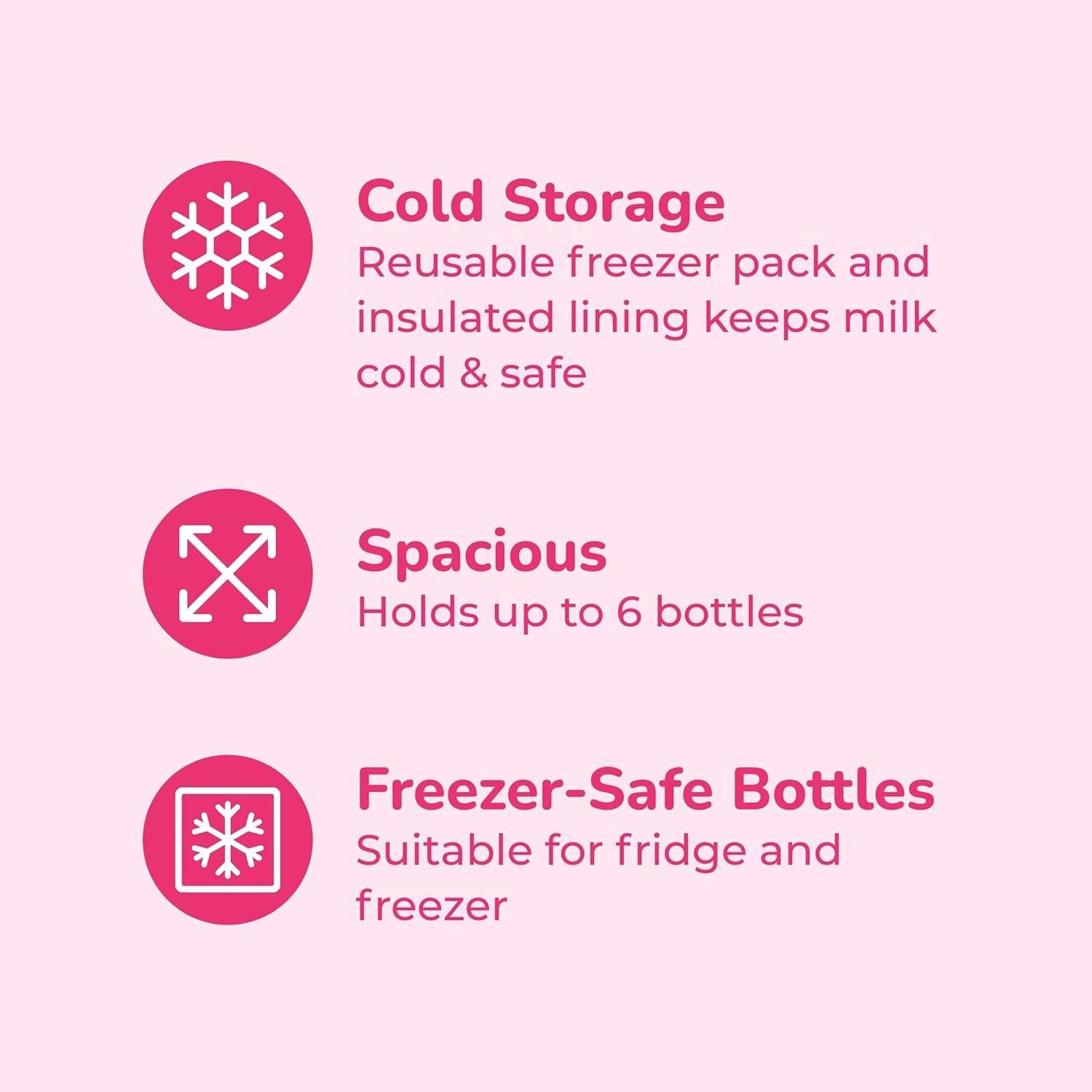 Spectra - Kit de almacenamiento de bolsas enfriadoras para leche materna - Rosa (bolsa de hielo y 2 botellas de cuello ancho)