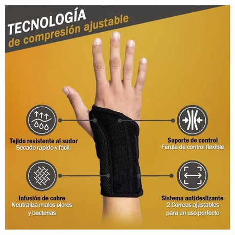 Muñequera Ortopédica Con Férula De Compresión De Cobre.(Derecha)