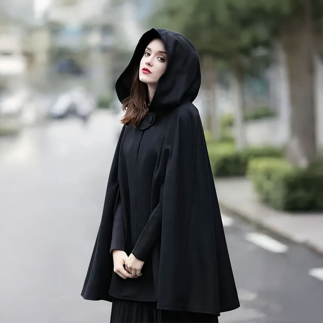 Abrigo largo tipo capa con capucha y ranura para brazos