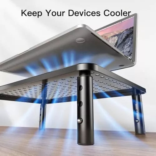 Aumenta el flujo de aire evita el sobrecalentamiento: nuestro elevador de monitor ajustable está hecho de acero recubierto con energía con una plataforma perforada de malla que mejora el flujo de aire hacia tu dispositivo. Los agujeros también ayudan a evitar el sobrecalentamiento temible y mantener el computadora fresco y en condiciones de trabajo máximas.
