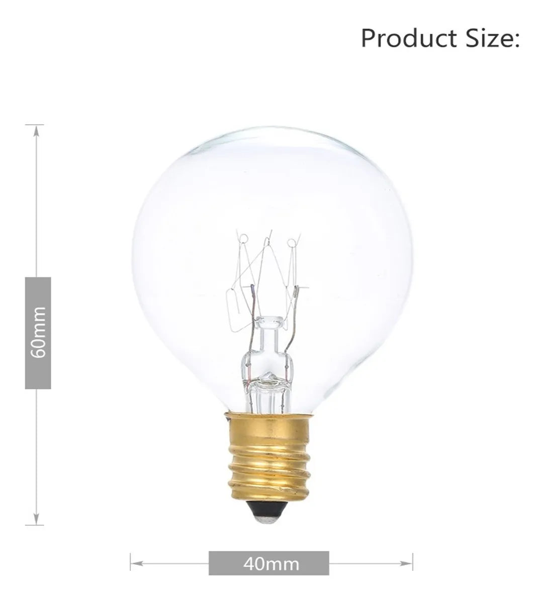 Abeja Bombillas de repuesto G40, bombilla de globo transparente que se adapta a enchufes de base de tornillo de candelabro E12 C7, bombillas incandescentes de vidrio transparente de 1.5 pulgadas y 5